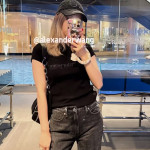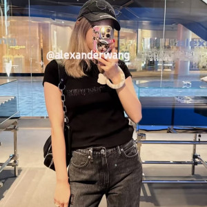 Alexander wang 2026 봄여름 신상품으로 패셔너블하고 심플한 크리스탈 레터링 핫픽스 장식이 특징입니다. 스위트한 느낌의 신축성 있는 슬림핏 라운드넥 반팔 티셔츠로 S, M, L 사이즈로 구성되어 있습니다.