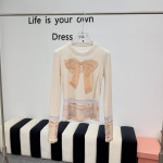 베이지 리본 레이스 긴팔 티셔츠+0원