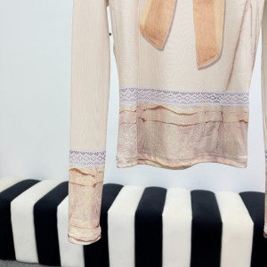 베이지 리본 레이스 긴팔 티셔츠 > 의류/패션