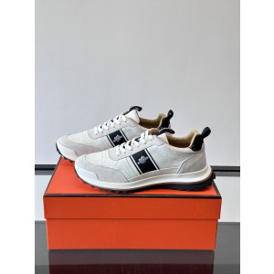 에르메스의 미스테리어스 시리즈로, 고급 가죽 배색 디자인을 적용했습니다. 측면에는 브랜드 클래식 마차 로고가 새겨진 블랙 직조 밴드가 장식되어 있으며, 두꺼운 베이지 미드솔과 블랙 러버 아웃솔을 매치했습니다. 전체적으로 복고풍 스포티함과 고급스러운 질감을 동시에 갖춘 스타일입니다. 신발 폼이 넓은 편이라 착용감이 편안하며, 일상 출퇴근이나 캐주얼한 외출에 적합합니다. 코디의 격을 한층 끌어올리는 포인트 아이템입니다.