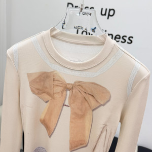 베이지 리본 레이스 긴팔 티셔츠+0원