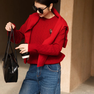 신상품 M5138 모델로 멀티 꽈배기 텍스처와 회전목마 라운드넥 디자인의 풀오버 스웨터입니다. 캐시미어 10% + 양모 90%로 제작되었으며, 일본 수입 머신 7게이지 니팅 기법으로 제작되었습니다. M/L/XL 사이즈로 모델 코디 참고 이미지 포함되어 있습니다.