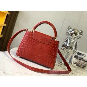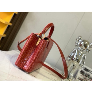 최고급 대행 품질의 프리미엄 제품입니다. 특징: - 연한 브라운 컬러의 광택 크로커다일 패턴 - 골드 메탈 장식 - 사이즈: 27 x 18 x 9cm (가로 x 세로 x 폭)